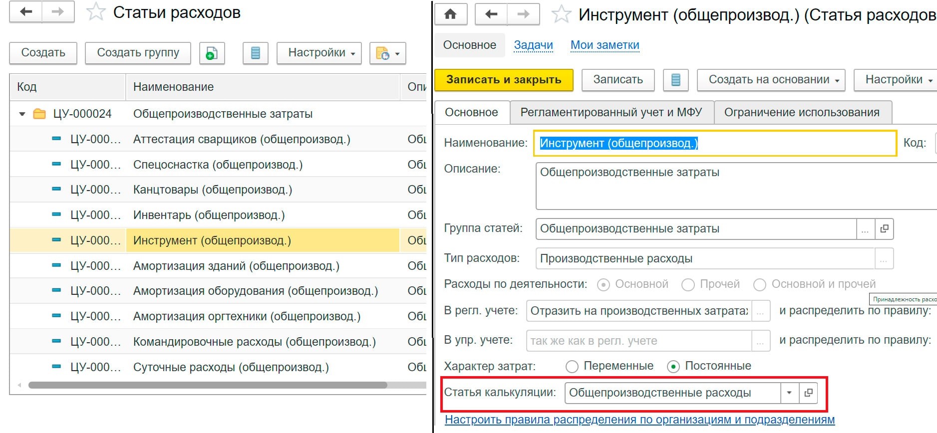 По пунктам калькулируется производственная себестоимость товаров. Для каждой статьи есть свой тип затрат. Данный список предопределен в соответствии со главой 25 НК РФ. В частности, здесь есть амортизация, оплата труда и прочее.